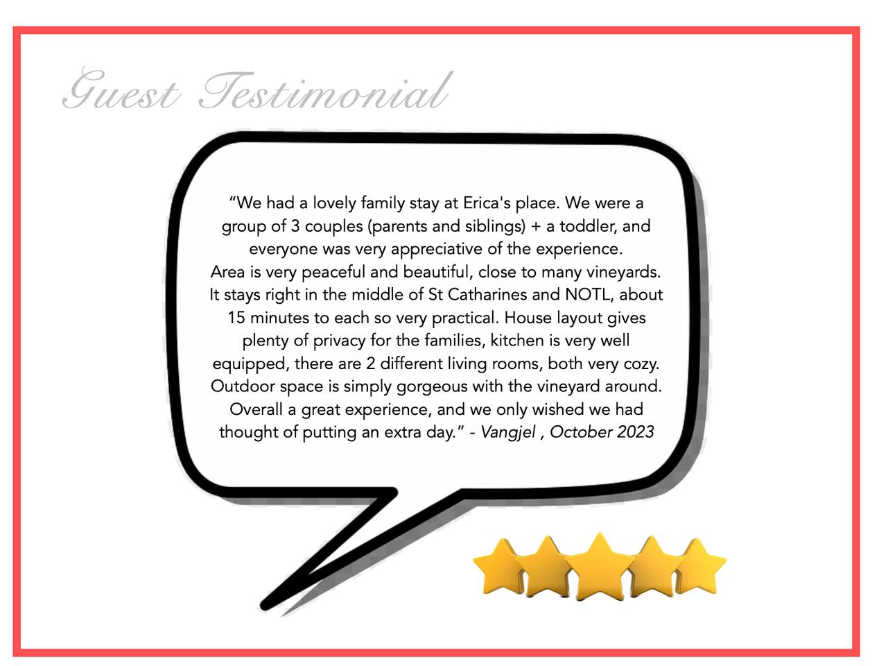 The home is private to guests, disinfected between bookings, and with self check in no interaction is required, for a safe, contactless experience. Outfitted with two dining rooms, two living rooms, and a fully equipped kitchen, our home offers a large family a great place to unwind and vacation. With a breathtaking location and honest and caring hosts, we hope to become your home of choice when visiting Niagara-on-the-Lake! Distance: - Old Town Niagara-on-the Lake: 8 km - Shaw Festival Theatre: 11 km - Outlet Collection at Niagara: 7 km - Niagara Falls: 20 km - Casino Niagara: 19 km ** We DO NOT allow weddings, wedding events, wedding parties or bachelorette or bachelor parties on this property and have exterior cameras in place to ensure no events as per our town requirements. No parking of trailers, campers, or tents of any kind allowed ***