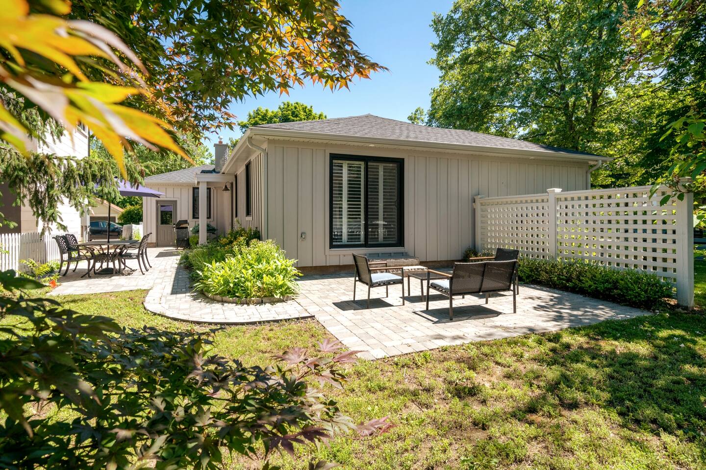Location! Location! Location! Our spacious, luxury single level home is directly in the Old Town of Niagara-on-the-Lake and welcomes up to 4 guests in 2 bedrooms, both with private en-suites. Open concept chefs kitchen overlooks the bright living and dining areas. 2 minute walk to the main street, NOTL Golf Course, and Lake Ontario. Minutes walk to all the Shaw Festival Theatres and 20 minutes by car to Niagara Falls. We look forward to welcoming you to the very ♥ of Niagara-on-the-Lake!