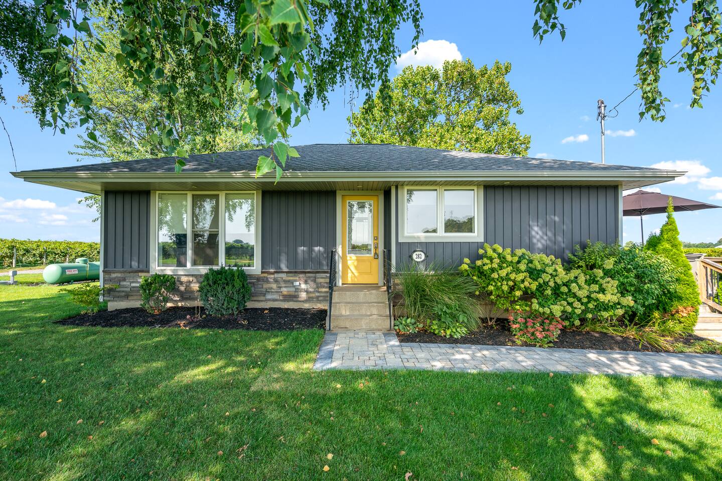 Our spacious bungalow was renovated in and transformed into a serene space for travellers to take in the finest that Niagara-on-the-Lake has to offer. Thoughtful finishes and an open design make this home a one-of-a-kind Wine Country escape. - 3 bedrooms, 2 full bathrooms (+1 sofa bed) - complete equipped kitchen - fresh linens & towels - large, spacious outdoor deck & BBQ surrounded by vineyards Minutes to countless wineries, Niagara Parks Recreation Trail, Old Town of NOTL and more!