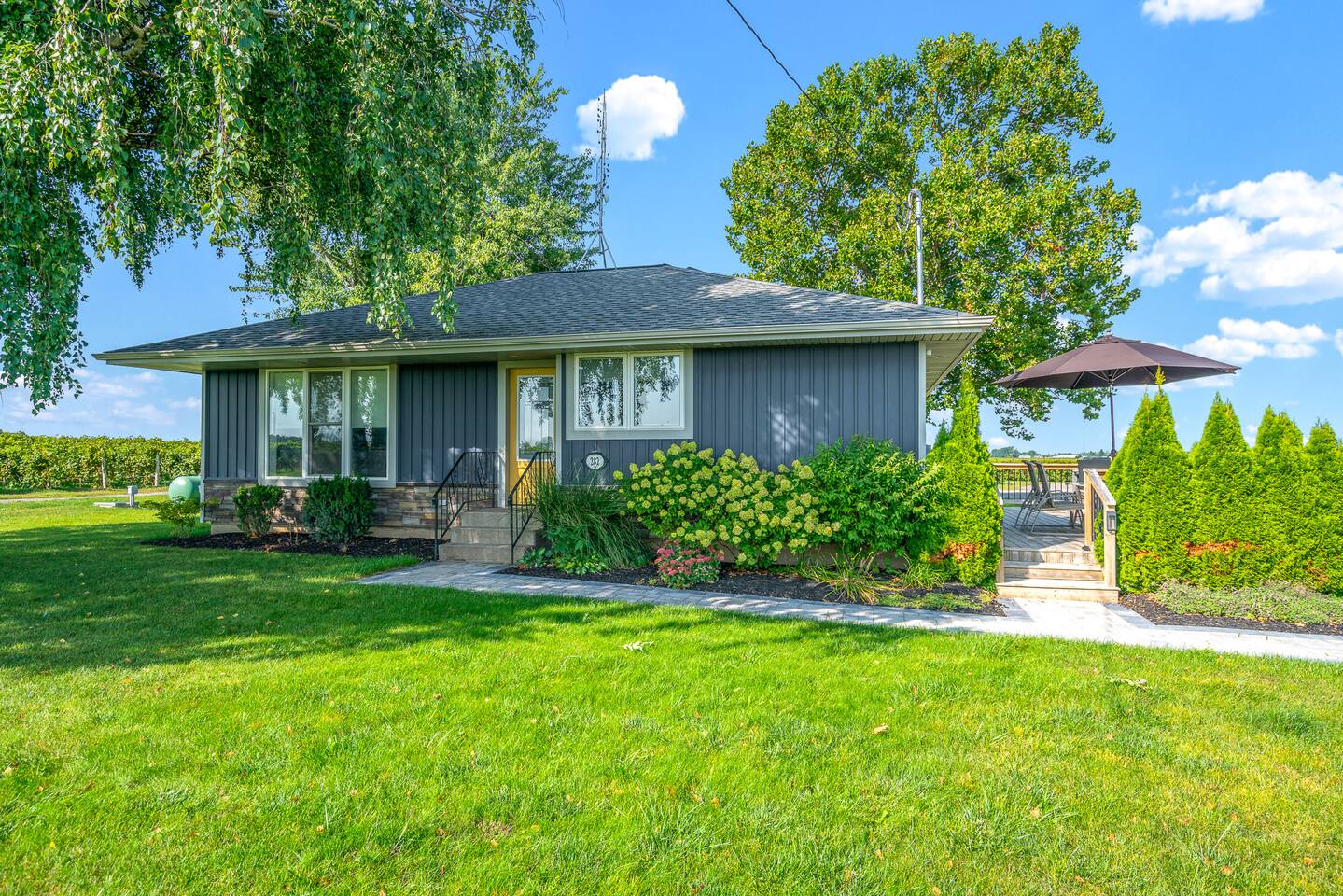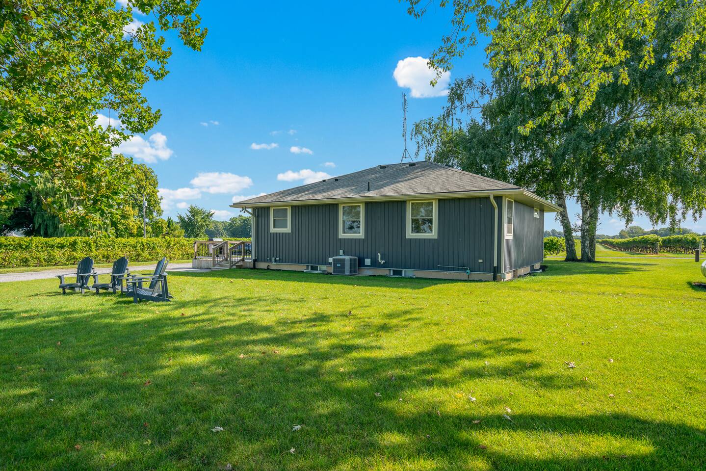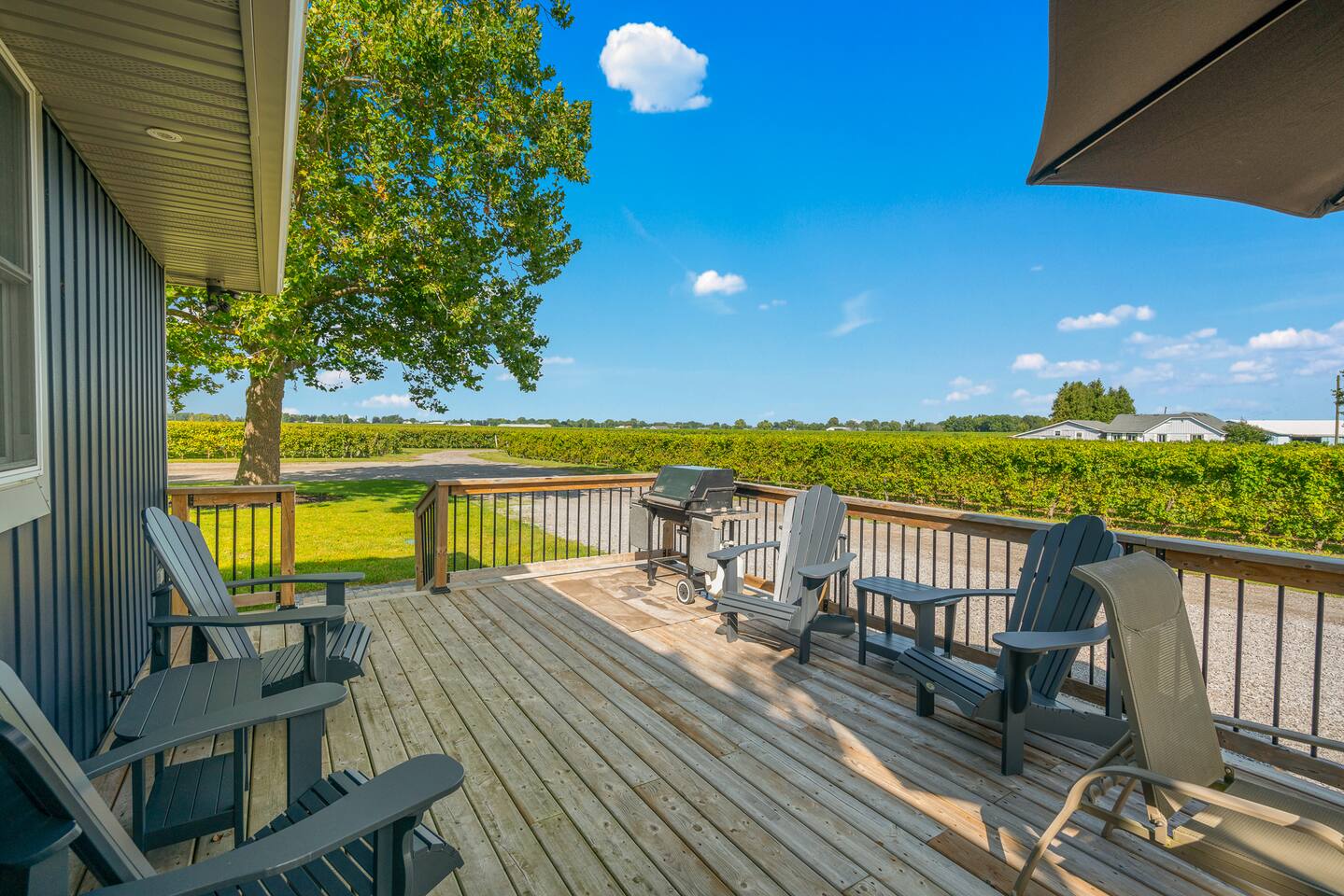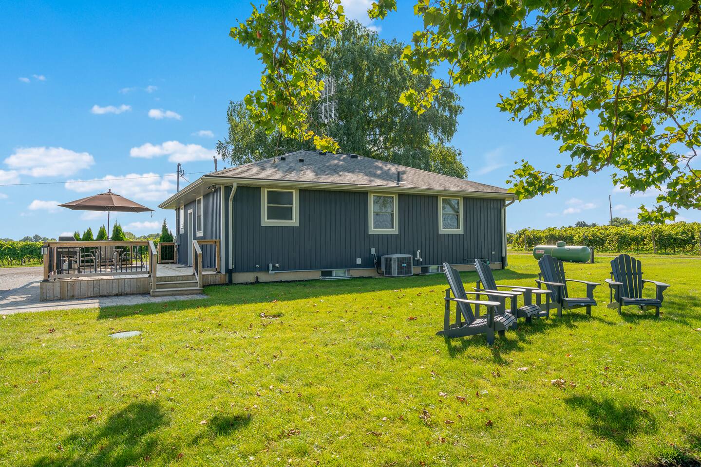 Completely surrounded by vineyards, our secluded setting offers you the chance to wake up in the heart of Niagara wine country, taking it all in from our spacious outdoor deck. Rent some bikes as we are just minutes to countless wineries, antique shops, Old Town Niagara-on-the-Lake and more. Our home is complemented with WIFI, smart TV (with ability to connect to guests own streaming accounts), free parking for up to 4 cars, BBQ, coffee & tea and more! With a great location and caring hosts, we hope to become your home of choice when visiting Niagara-on-the-Lake! We allow up to one dog, under 50 pounds. Please inquire. Distance to points of interest: Shaw Festival Theatre: 9 km Fort George: 9 km Palatine Hills Winery: 1 km Pillitteri Estate Winery: 3 km Ferox Winey: 3 km Gretzky and Trius Winery: 3 km Konzelman Winery: 4 km NOTL Golf Club: 7 km Pillar and Post Spa: 6 km Outlet Collection at Niagara: 12 km Niagara Falls: 21 km IG @rentalsniagara