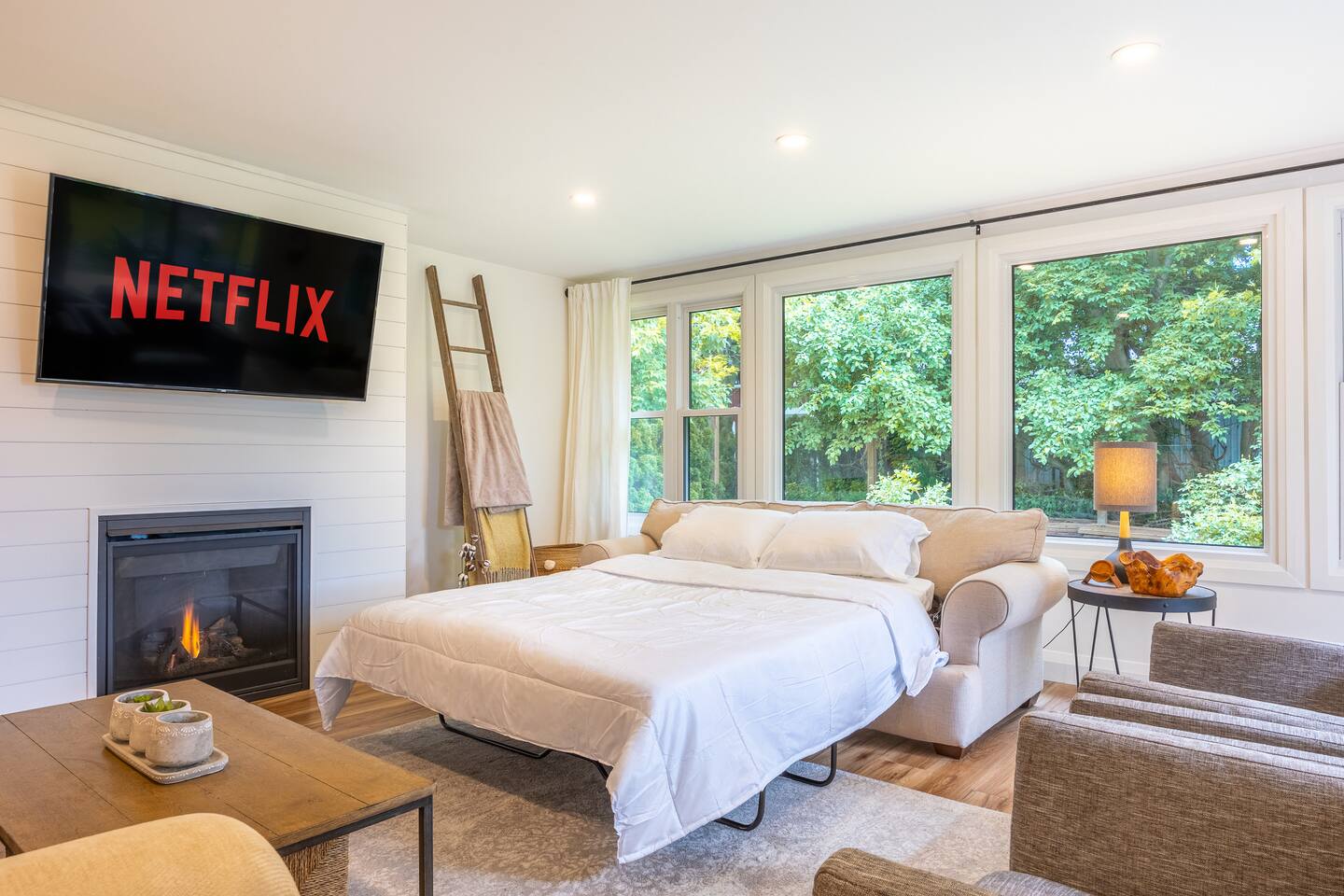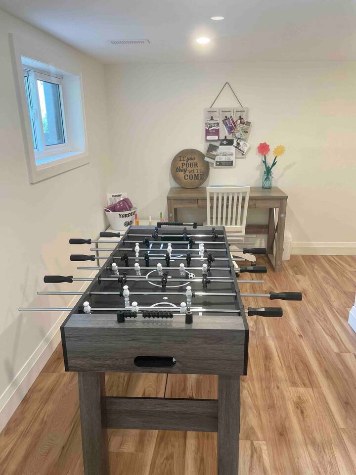 IG @vineyardviews_notl The home features two bedrooms, a stylish bathroom, open kitchen and large living room. Relax and unwind with luxury amenities including a wood burning sauna and stunning vineyard views. Thehouse includes: - Two bedrooms to comfortably sleep up to 6 - Two queen beds and one quality pull out sofa in living room (extra person fee applies) - Gorgeous chef's kitchen with stainless steel appliances and gas range - Dining room seats 8 with gorgeous views of the vineyards - Large, light filled living room with beautiful gas fireplace and smart TV - Reading nook, overlooking the vineyards - Dedicated workspace - In home Wifi - Laundry room - Wood burning cedar sauna for 6 guests (wood not included) - Tuscan inspired large bocce ball court and sitting area - Patio dining on back deck and outdoor conversation circle with muskoka chairs (seasonal) - BBQ (gas) - Outdoor painted feature wall - Parking for up to 4 cars - Foosball table - Lawn games (Yardzee, oversized Jenga, croquet) - Family friendly (Pack N Play, highchair, kids toys and games) - Pet Friendly (pet fee applies) Distance to some popular wineries, breweries and attractions: - Ferox Winery (1 min drive, 7 min walk) - Pilliteri Estate Winery / BarrellHead Restaurant (2 min drive, 15 min walk) - Stratus Vineyards (3 min drive, 15 min walk) - Niagara Oast House Brewers (3 min drive, 15 min walk) - Jackson-Triggs (3 min drive, 15 min walk) - Silversmith Brewing Company (3 min drive) - Ironwood Cider House (4 min drive) - Hinterbrook Estate Winery (4 min drive) - Peller Estates (5 min drive) - Trius Winery (5 min drive) - Wayne Gretzkys (5 min drive) - Konzelmann Estate Winery (5 min drive) - Caroline Cellars (5 min drive) - Lailey Winery (5 min drive) - Palatine Hills Estate Winery (6 min drive) - Two Sisters Vineyards (7 min drive) - Inniskillin Wines (7 min drive) - Big Head Wines (7 min drive) - Old Town Niagara-on-the Lake: 2.8 km - Shaw Festival Theatre: 4.8 km - Outlet Collection at Niagara: 12 km - Niagara Falls: 19 km - Casino Niagara: 20 km We are a 5 min drive to Old Town Niagara-on-the-Lake and 3 min drive to the heart of Virgil.
