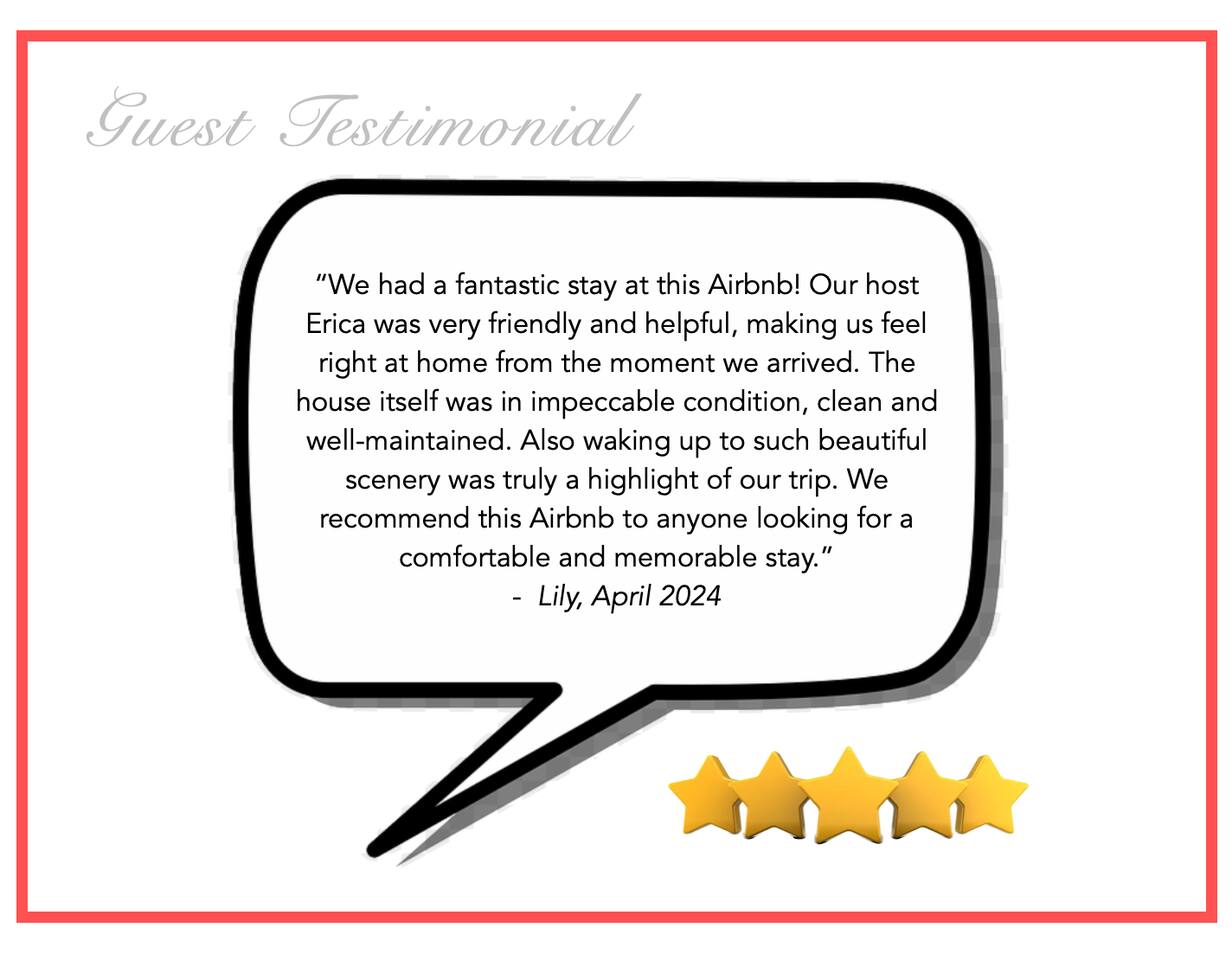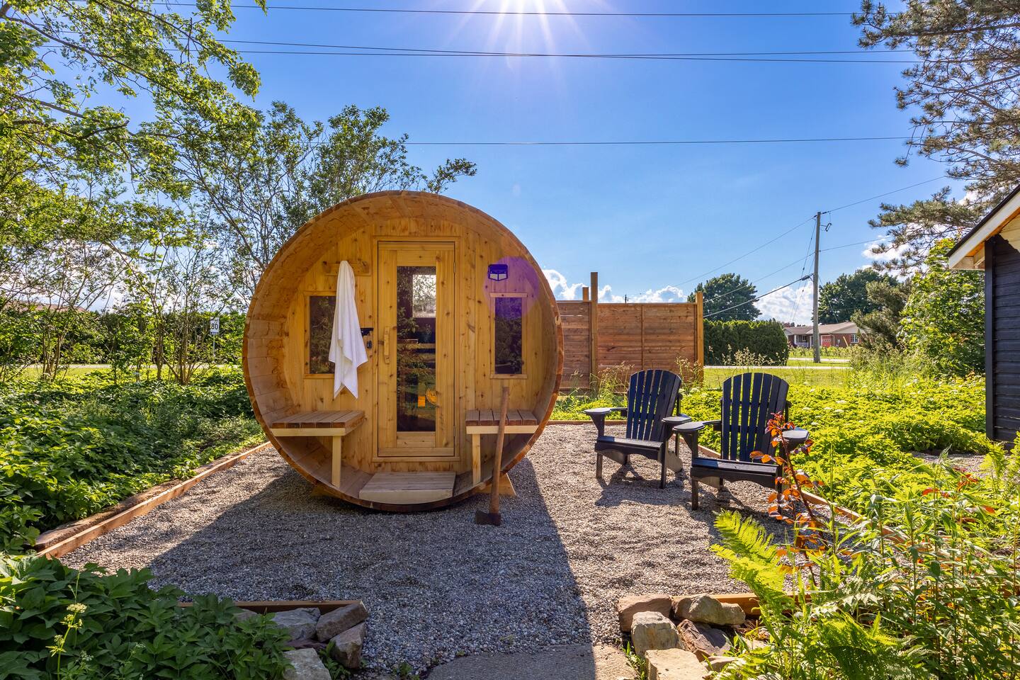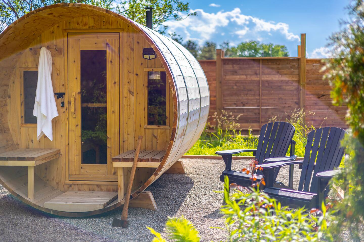 Please bring your own wood for the sauna. We provide an axe for chopping up firewood and it is located inside the sauna. Wood can be purchased from many local gas stations and hardware stores. *We will consider small dogs for a $100 fee. Please inquire with us. ** We DO NOT allow weddings, wedding events, wedding parties or bachelorette or bachelor parties on this property and have exterior cameras in place to ensure no events as per our town requirements. No parking of trailers, campers, or tents of any kind allowed *** - WIFI in rural areas can be slow at times - Pet Friendly: Bring your furry family member! Pet fee applies. - In summer season there can be "bird bangers" which are loud booms from the vineyards. This happens only in daytime hours. - Exterior cameras are in place - We only accept guests who have their Government ID verified with Airbnb - We will ask ALL guests before booking a few questions about their stay, to ensure we are community minded hosts that care for our neighbours. - Check in is SELF entry and we will not meet you on arrival. - We provide one towel and pillow per guest, a hand towel for each washroom. - Lawn mowing in season happens once per week. This may happen during your stay.